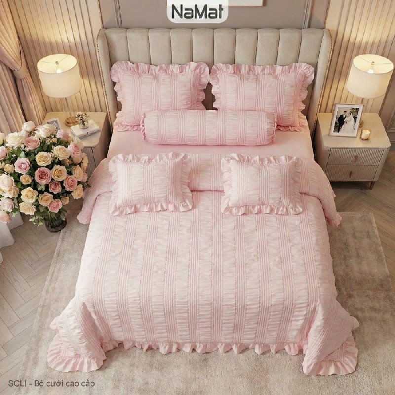 • Cấu trúc 6 món tiện lợi: Bao gồm 1 chăn chần, 1 ga, 2 vỏ gối đầu và 2 vỏ gối tựa, đáp ứng nhu cầu cơ bản cho giấc ngủ trọn vẹn.