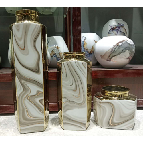 Lọ Hoa Trắng Vàng Bộ 3 Chiếc VH02