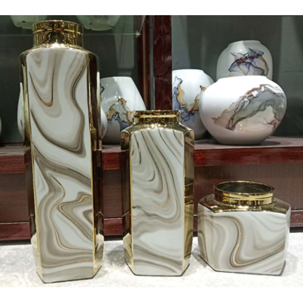 Lọ Hoa Trắng Vàng Bộ 3 Chiếc VH03